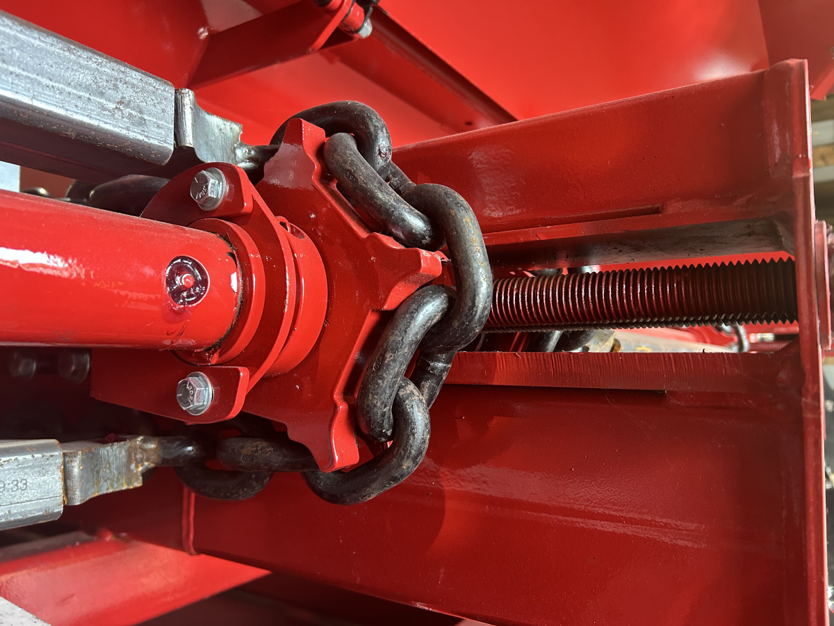 This Heavy Duty dual log chain arrangement features custom machined drive & idler sprockets with scraping systems to nearly eliminate buildup. Our apon tensioner features massive tensioners and auto-adjust scrapers on idler sprockets. This saves you time and effort will extending the service life of critical components. Also note the barrell drilled idler shafts for easy idler sprocket greasing!